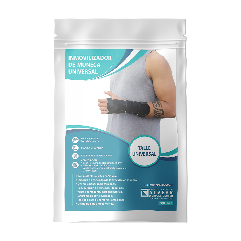 Inmovilizador de muñeca, talle universal. Contiene múltiples ajustes en velcro. Ideal para tratar esguinces en la muñeca. Ayuda en post-operatorios, recuperación de tendinitis, fisuras y torceduras.